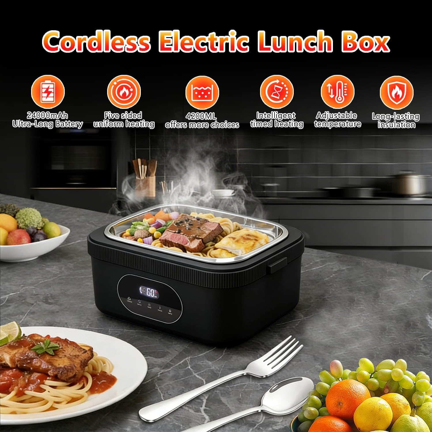 Enjoy Hot Meals Anywhere with Our Portable Heating Solution Never settle for cold lunches again Our advanced heated lunch box delivers reliable performance for professionals travelers and anyone who values a hot home-cooked meal away from home Perfect for use at the office jobsite car or while traveling KEY FEATURES & BENEFITS 6 Temperature Settings - Precise heat control for different food types 8 Timer Modes - Auto-shutoff for safety and convenience Long-Lasting Battery - Supports multiple uses throughout your day Leak-Resistant Design - Secure sealing prevents spills during transport Fast Charging Capability - Compatible with included PD 20W charger COMPLETE PACKAGE INCLUDES 1 x Electric Lunch Box (choose your color and size) 1 x PD 20W Fast Charger 1 x Carrying Case for easy storage and transport 1 x Stainless Steel Spoon 1 x Stainless Steel Fork 1 x USB-C Charging Cable 1 x User Manual IDEAL FOR MULTIPLE LIFESTYLES Office professionals avoiding microwave lines Truck drivers and construction workers needing reliable hot meals Travelers wanting convenient food heating Outdoor enthusiasts and active lifestyles