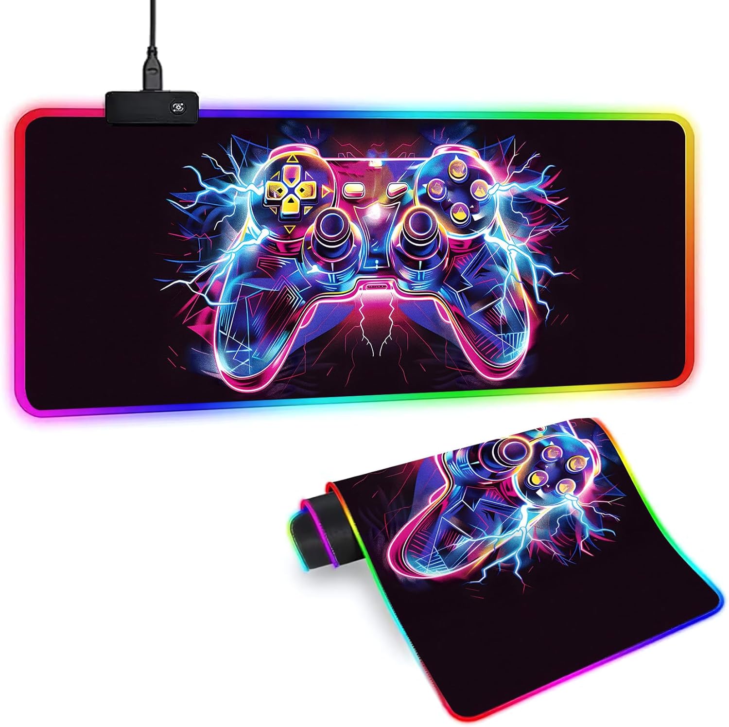 XL Led Gaming Mouse Pad with 14 Light Modes - Light Up Gamer Mouse Pad,31.5 x 11.8in Non-Slip Gamepad Style RGB Large Gamer Mousepad,Black Long Glowing Gaming Accessories for Desk,Waterproof